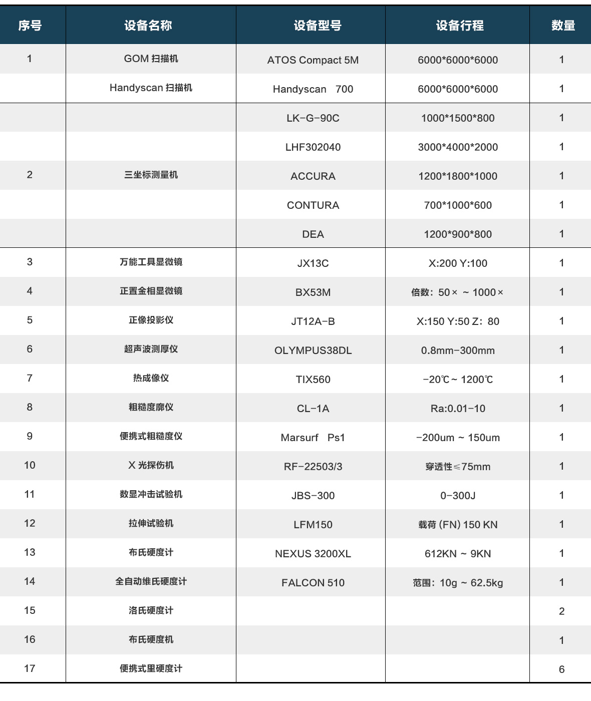 檢測設備清單